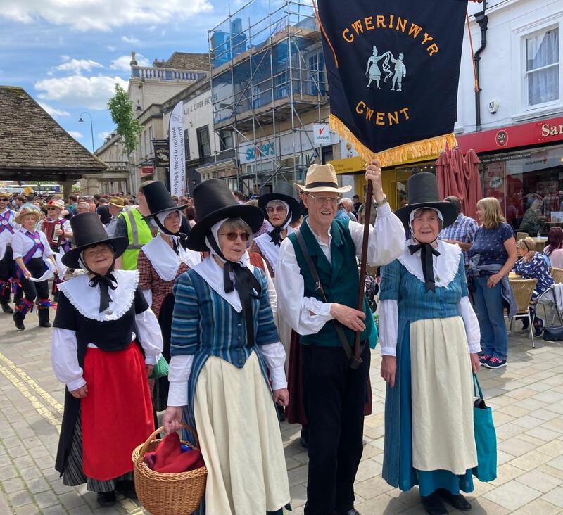 The festival had a new layout this year with all venues sited around the car park at Tredegar House as the National Trust was expecting work to be carried out on some buildings and couldn’t guarantee the date. It made for a compact ‘village feel’ which many attendees preferred. Our next outing was at the end of the month at Chippenham Folk Festival, an event we have supported many times. Another lovely day and we gave two performances, one in the main street and one outside the Rose and Crown, both alongside other groups. We weren’t the only Welsh side in attendance as Tipyn O Bopeth from West Wales also took part. There were good crowds to watch the dancing, and the Grand Parade through the town with all the Morris, Appalachian, Clog, Step and Welsh groups provided a colourful spectacle for them.